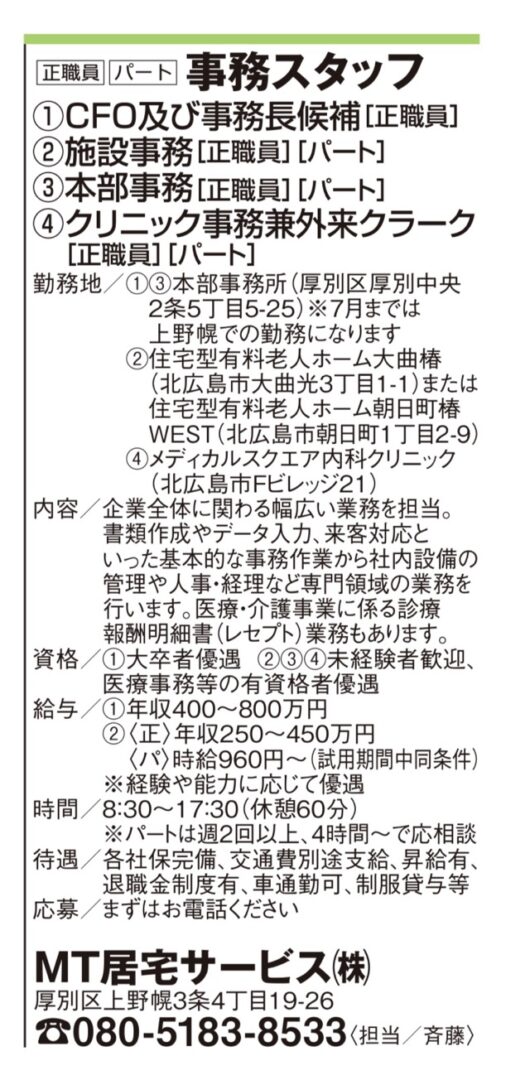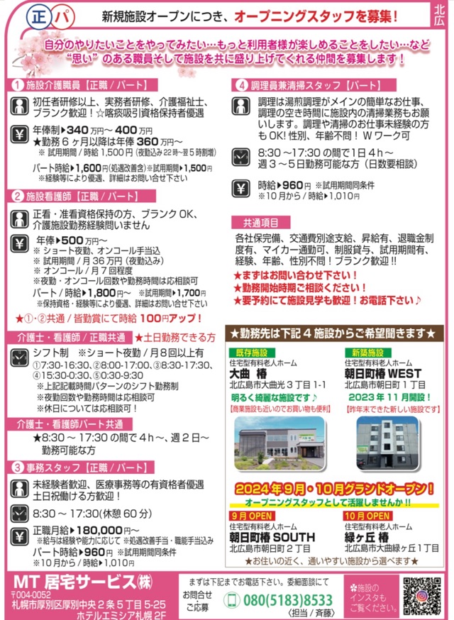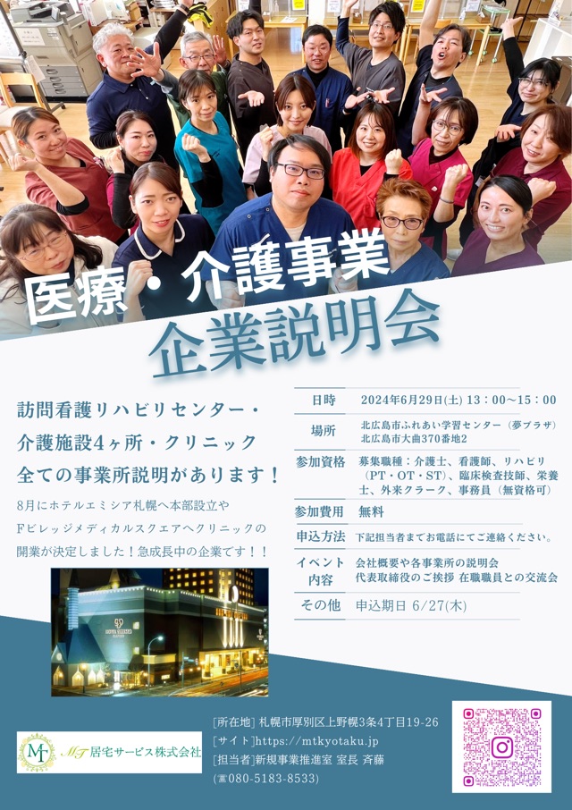 訪問看護リハビリセンター・介護施設4ヶ所 クリニック全ての事業所説明があります! 日時:2024年6月29日(土)13:00~15:00 場所:北広島市ふれあい学習センター(夢プラザ) 8月にホテルエミシア […]