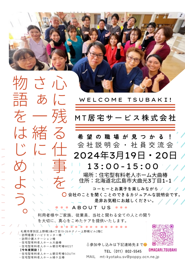 来月(3月)も職場説明会を開催する運びとなりました😊 訪問看護、訪問リハビリ、施設介護・看護、福祉業界に ご興味のある方がいらっしゃいましたら、是非お気軽にご参加ください♪♪
